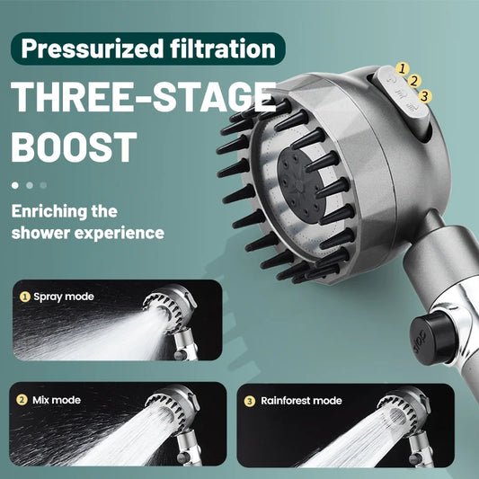 VEHHE High Pressure 3-Mode Message Shower Head With Stop Button Handheld Water Saving Spray Nozzle Bathroom Accessories