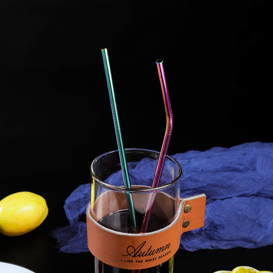 VEHHE Reusable Straws Stainless Steel Dazzling 8 Set with Brush Portable Bag
