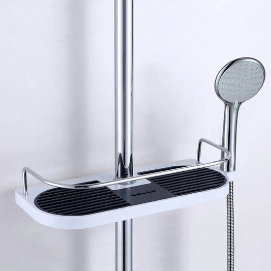 VEHHE Slide Bars Shelf Bathroom Storage Rack Black And White Plastic Shower Holder Adjustable Single Tier Shampoo Tray