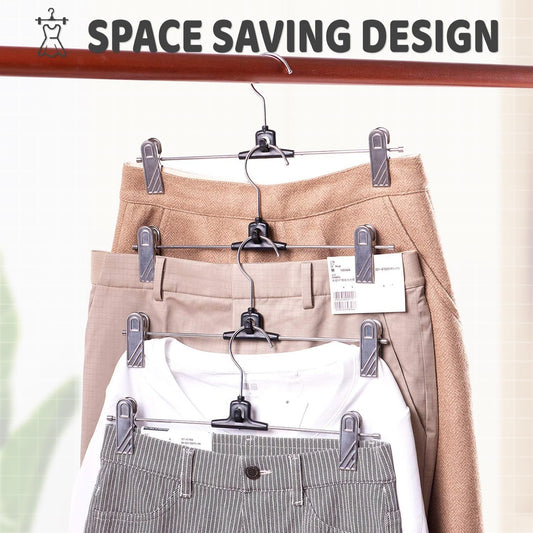 20 Packs Pant Skirt Hangers with Adjustable Clips, Metal Shorts Hangers for Closet Space Saving