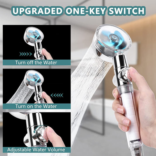 High Pressure Shower Heads Handheld Turbo Fan Shower with Hose and 2 Filter Cottons
