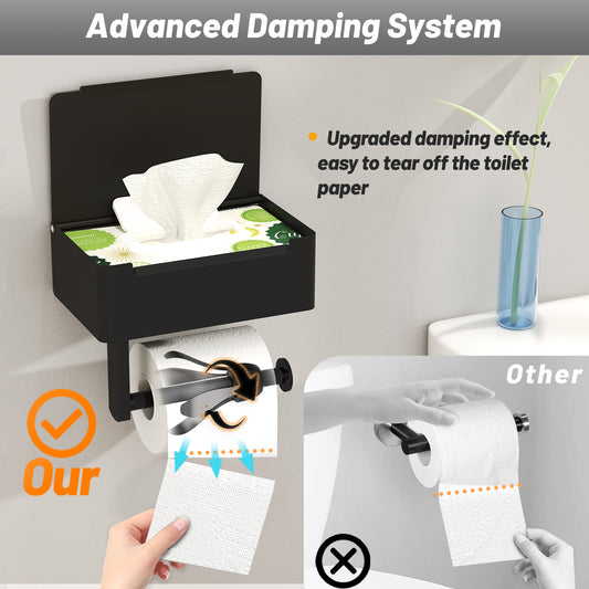 Matte Black Toilet Paper Holder with Shelf, Perfect Tear Stainless Steel