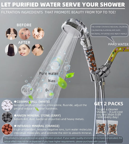 3 Modes Handheld Shower Head Filtration Water Purify Soften Water