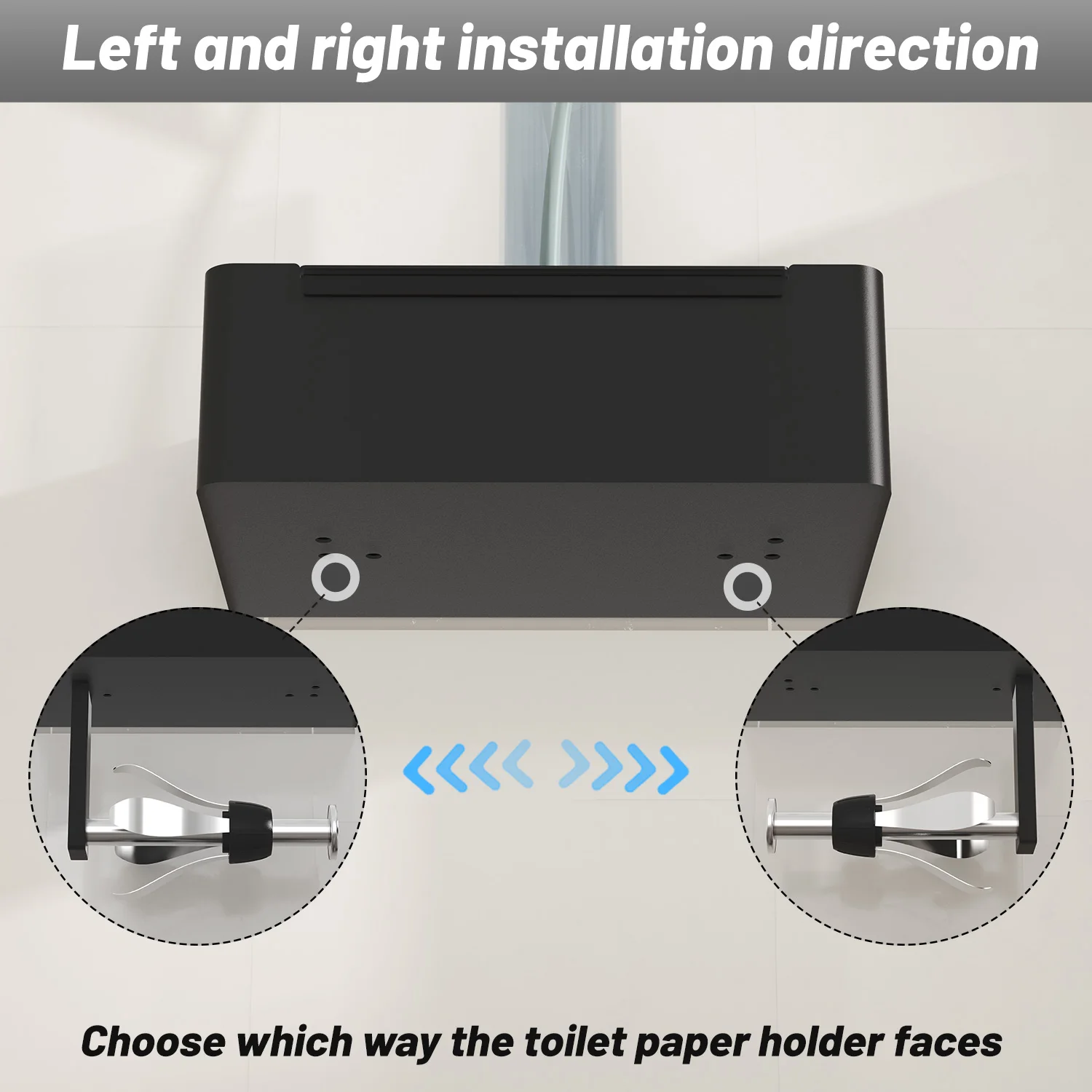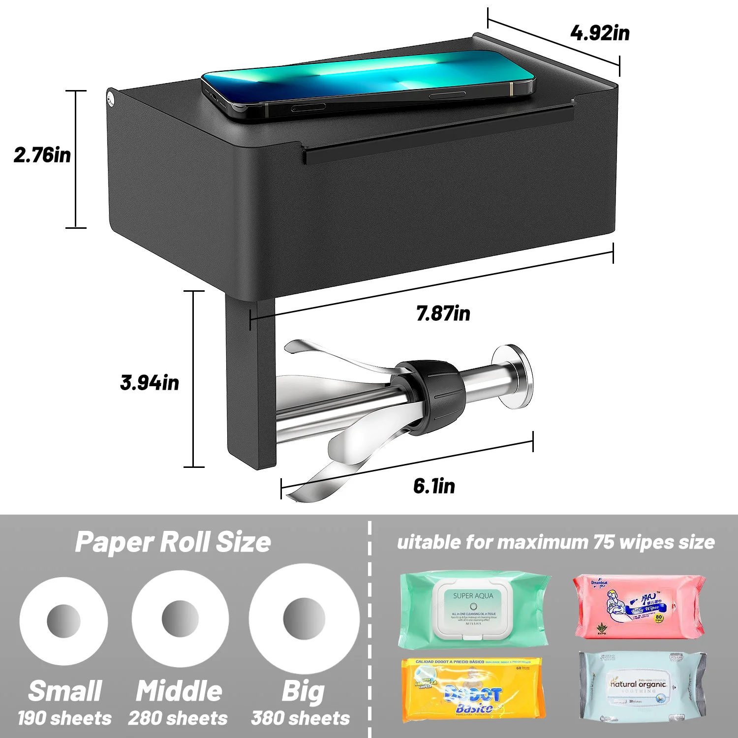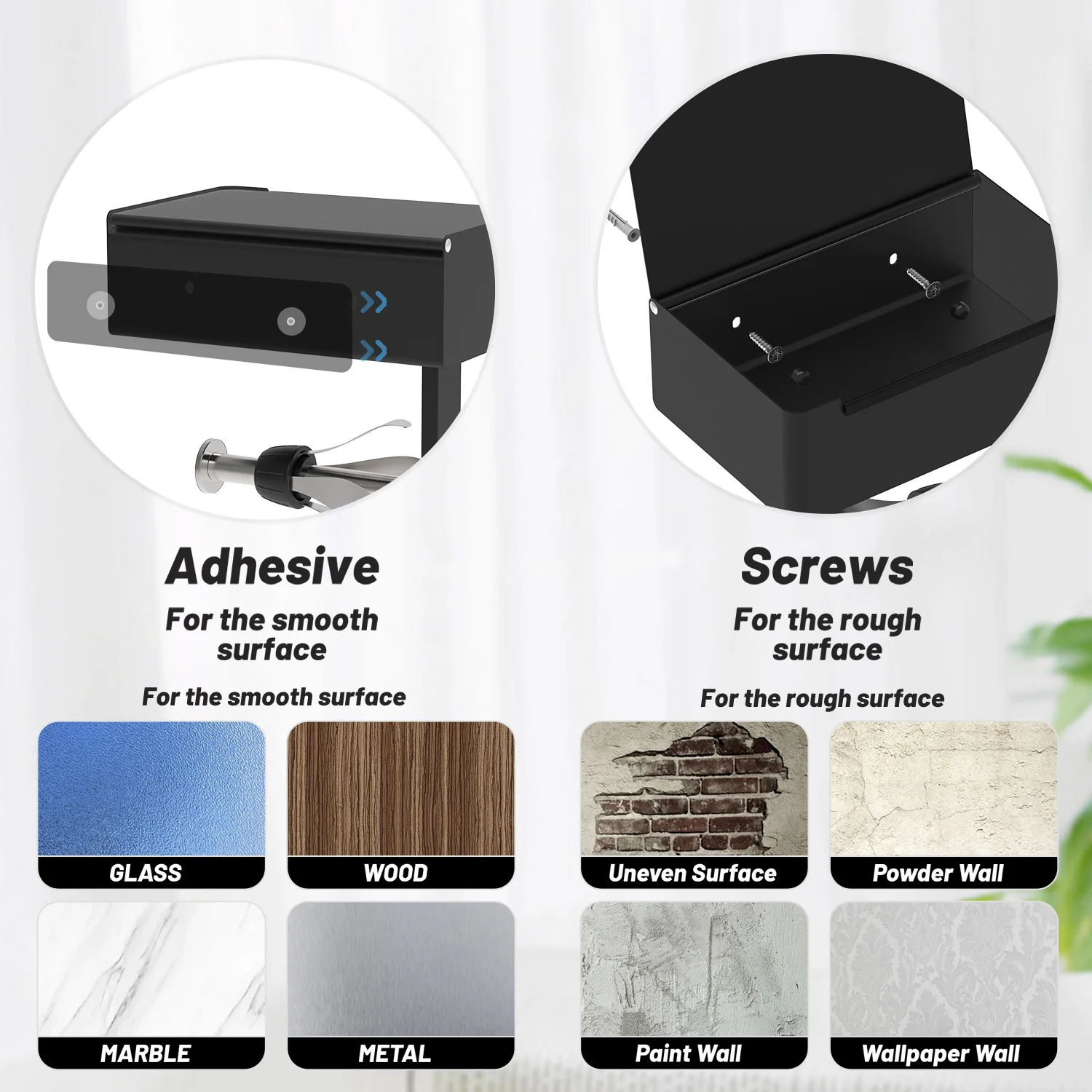 Toilet Paper Holder With Shelf Adhesive or Screw Toilet Black Paper Roll Holder Wall Mount with Storage